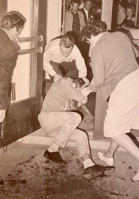 Photo of bloodied protestor at Watts Restaurant: Jim Wallace, from Courage in the Moment: The Civil Rights Struggle, 1961-1964